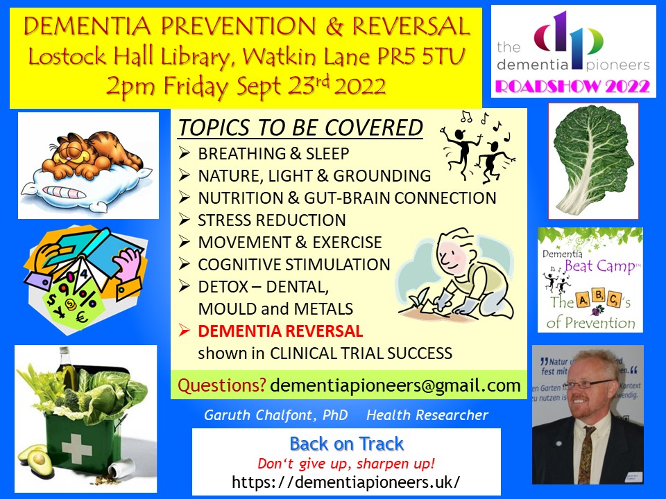 The Dementia Pioneers Roadshow 2022 makes a stop in Lostock Hall on Friday 23rd Sept at 2pm. Are you or a loved one having memory problems? Want to find out possible reasons WHY and get them sorted…?
