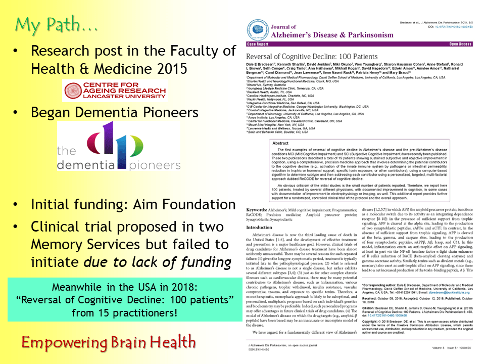 This was the 2018 paper from Dr Bredesen and 15 practitioners that convinced me there was a lot that could be done.