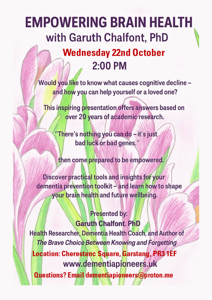 You are warmly invited to attend this Talk in celebration of “The Brave Choice…” a Picture Book for Brain Health. Special thanks to Michelle and the team at UNIQUE Homecare for hosting this book launch in their Garstang office!
