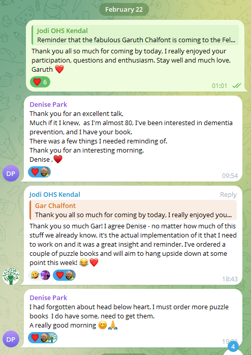 Thank you for your comments, letting me know you found it useful, worthwhile and fun! (If you have any photos please email them to dementiapioneers@proton.me and I’ll add them below.)