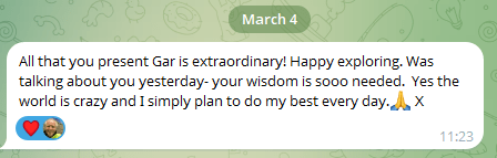 “Garuth, wow I received your picture book, thank you so much! I love it. It’s in its own category in the way that you are drawn in to understanding the key points you want to make. I love this approach – go in with the information via the right brain. Right up my street!
